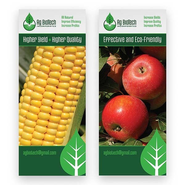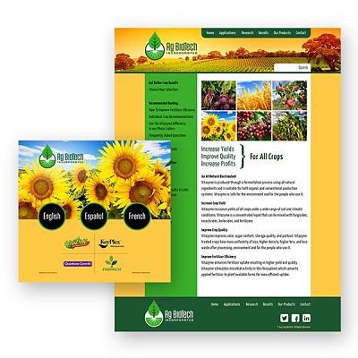 Ag Biotech, Inc. produces biostimulants for the agricultural industry. Our challenge was to create a website design, sales promotion materials, and event banners that would bring life and excitement to a company that produces microbial seed and soil inoculants and fertilizers. Our approach was to highlight the effects on plants and produce after using their products rather than focus on the products themselves. This approach allowed us to design with highly-saturated colors that are innate in fresh fruits and plants.